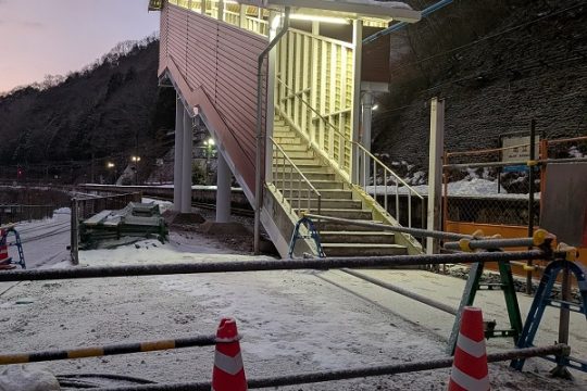駅舎建て替えが進む伯備線足立(あしだち)駅