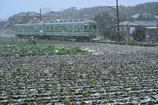 銚子では珍しく風雪、激しく雪が降る中、列車と共に記録してまいりました。...