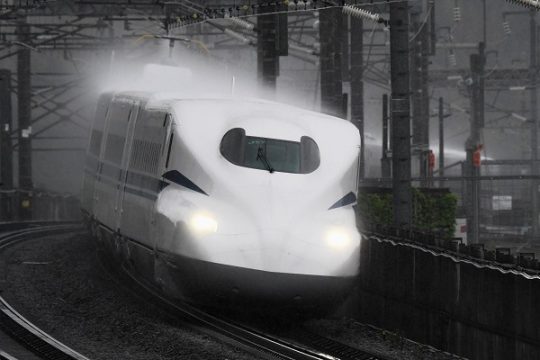 新幹線N700S「J57編成」が大雨の中で試運転を開始