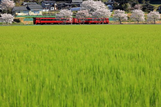 ピークを迎えた桜並木と新緑の麦畑。季節の移ろいを感じます。...