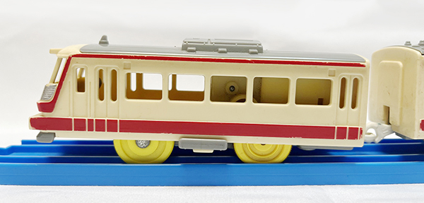 nayu_03 側面の様子。「レッドアロー」の名前の由来になったとされる上下の帯はモールドで表現され、塗装はタンポ印刷。 【この画像の記事に戻る】 懐かしの初代西武レッドアロー!そのプラレールは現代における「リアル造型なおもちゃ」の走りだった? 次の画像