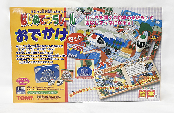 nayuhazi_03 箱の正面。デザインは独自のものだが、説明書きと写真の範囲を赤いラインで区切る当時のセット品フォーマットは健在だ。 【この画像の記事に戻る】 【可愛い目】プルバック式のプラレール!?幼児の「入門用」に作られた愛らしいシリーズとは? 次の画像