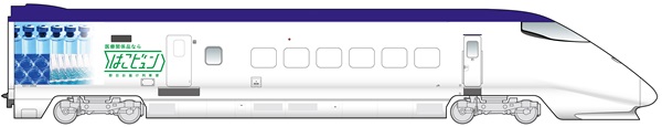 11号車 編成を山側から見た外観を一挙にご紹介。両先頭車は海側・山側でデザインが異なるが、11号車山側は医療機器をラッピングしている(画像提供:JR東日本) 【この画像の記事に戻る】 【JR東日本】E3系使用の荷物新幹線が登場決定!ラッピングデザインや車内の様子を一挙に紹介 次の画像