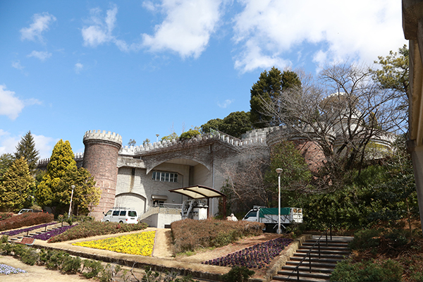 7 モノレール展示室のあるかつての手柄山駅舎。城郭のような作りは博覧会当時の建物。ちなみに手前の下段はローラースケート場跡。 【この画像の記事に戻る】 姫路の空を翔けた60年前の幻のモノレール「姫路モノレール」の現在と廃線跡を見る! 前の画像 次の画像