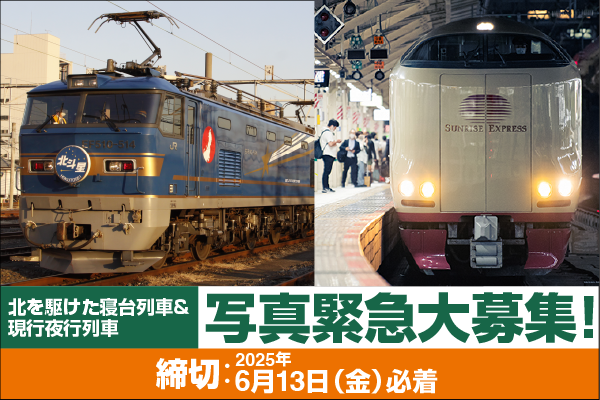 また、今でも乗ることができるクルーズトレインや夜行列車、そして最後の定期寝台特急となった「サンライズエクスプレス」などの写真もお待ちしております!