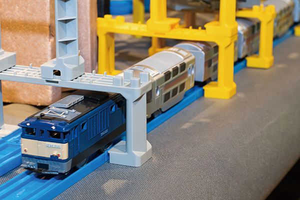 今回も改造・加工作品が多数走行。こちらは全て3Dプリントで設計・出力されたというEF64 1000番代とE26系客車。