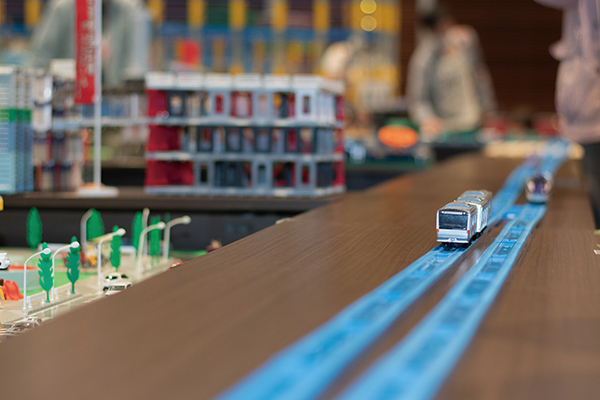 各ブースの周囲には周回のレイアウトが設置。訪れた子供たちが思い思いに車両を走らせることができた。