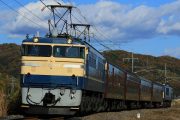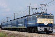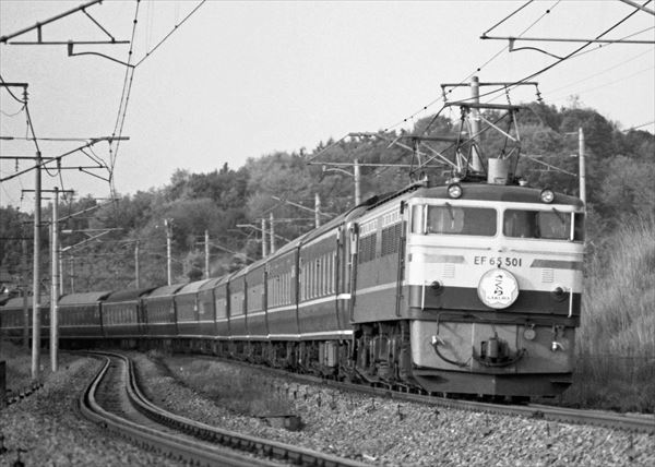 東京駅発着のブルートレインは、東京機関区所属のEF65 500番代が牽引していたが、検査・運用の都合で、下関運転所のEF65 501が先頭に立つこともあった。 ’76.05.05 今日の一枚Memories 山陽本線 小野田~厚狭 P:杉山俊一 (今日の一枚Memoriesより)