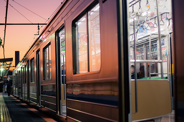 夕暮れ時は、205系のステンレスボディに空の色が反射して美しい。