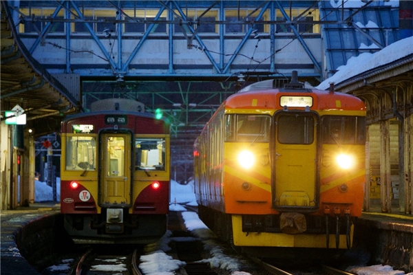 しなの鉄道の115系とえちごトキめき鉄道のET127系が並ぶ。いずれも元JR東日本所属の車両だが、現在は第三セクター各社に移籍した。 23.03.06 えちごトキめき鉄道 妙高はねうまライン 妙高高原 P:金谷友暉 (今日の一枚より)