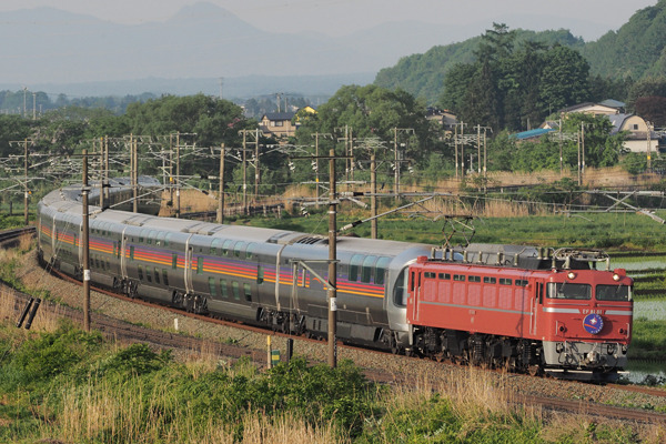 IGRいわて銀河鉄道線内を走る「カシオペア」。移管後もこうして時折JRからの直通特急が走る。 ‘19.5.26 IGRいわて銀河鉄道 好摩―岩手川口 P:宮前行男 (今日の一枚より)