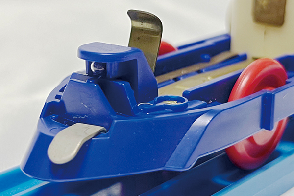 nayu04 「ライト付ニュー新幹線」のライト部のアップ。スイッチの上に豆電球が見える。 【この画像の記事に戻る】 短命だったプラレール「ライト付」の100系新幹線 貴重な初期の姿とその後 前の画像 次の画像