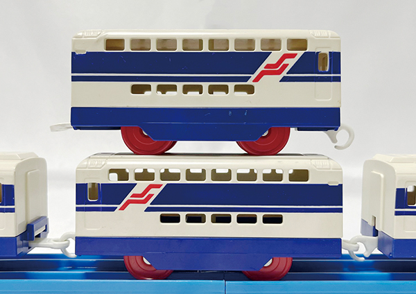 nayu09 実車とは異なり、149形は海側・山側ともに同じ窓配置でデフォルメされている。 【この画像の記事に戻る】 短命だったプラレール「ライト付」の100系新幹線 貴重な初期の姿とその後 前の画像 次の画像