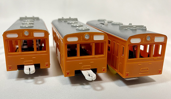 pladen_06 「復活!」および「みんなが選んだ」のものは、幕・前照灯・尾灯が先頭後尾の区別なく色差しがされている。 【この画像の記事に戻る】 全てはここからだった?プラレール通勤型電車規格の礎を築いた「電動プラ電車」とは? 前の画像 次の画像