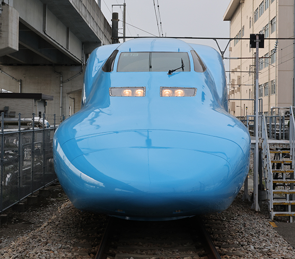 4S9A7370 前面を見る。青いカラーリングがインパクト大だ。 【この画像の記事に戻る】 【700系がブルーに!】4月12日から運行開始される「ワンピース新幹線」がついにお披露目! 前の画像 次の画像