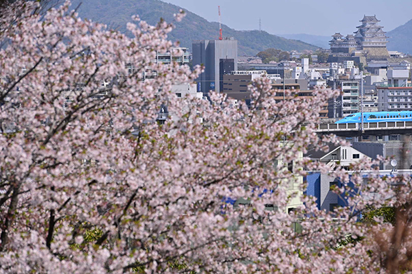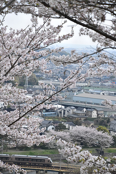●この日走り始めた青い新幹線を満開の桜が歓迎してくれました。