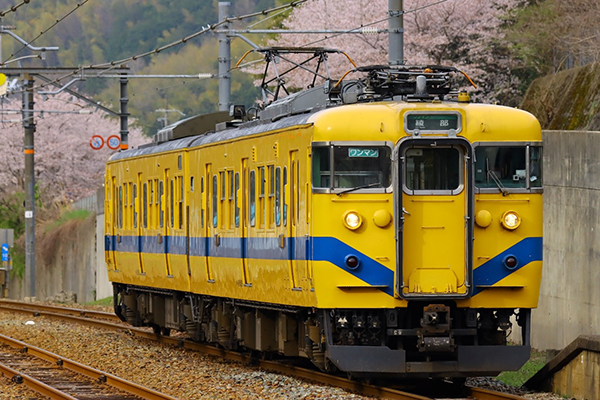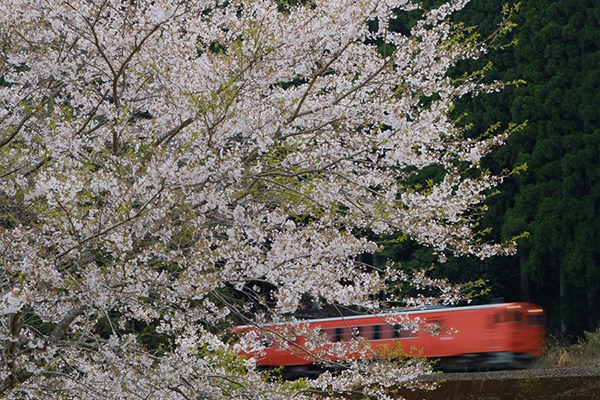 ●列車が去り行く傍らで、桜散り季節も移ろう…。