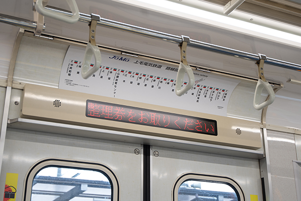 DSC_0298 車内の電光掲示板はそのまま活用。元03系の車内で「整理券をお取りください」の文言が見られるというのも新鮮だ。 【この画像の記事に戻る】 03系一族の中で唯一今もスカートなしで活躍中 上毛電鉄で走る「元日比谷線」の電車を調べてみた 前の画像 次の画像