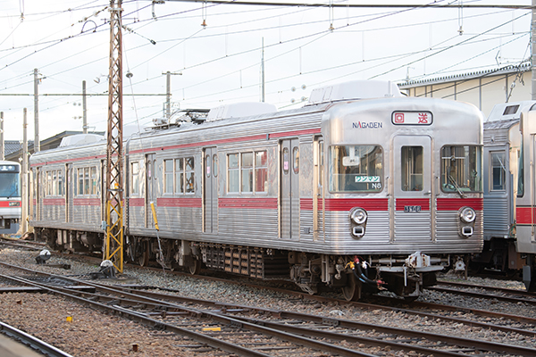 03系が譲渡された鉄道会社は、長野電鉄の他に熊本電鉄、北陸鉄道、上毛電鉄がありますが、いずれも2両編成で運行されています。そんな中で長野電鉄だけが全編成3両で導入しており、中間車が在籍しています。さらにパンタグラフもこの中間車に装備していることから、いわゆる「前パン」の車両もいないのも特筆されます。