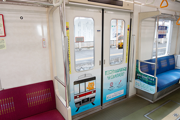 乗車した際には、車内広告ラッピングが施されていた。注意書きのステッカーなどは日比谷線時代からそのままとなる。