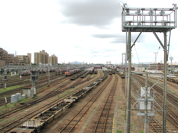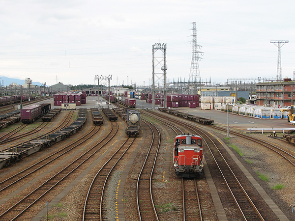 新潟貨物ターミナルは日本海縦貫線系統に加え、上越線経由の首都圏からの列車も発着する大規模ターミナルのひとつです。一部の荷役線は電化されているものの、広大な仕分け線などは非電化となっているためディーゼル機関車による入換が行われています。現在は愛知機関区のDD200が担当していますが、訪れた2018年当時はまだ東新潟機関区所属のDE10が入換を担当していました。