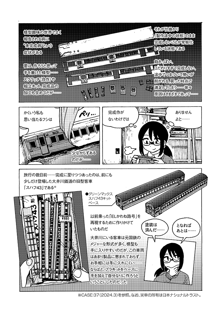 ジャンクの鉄道模型を見つけると直さずにいられない! ディープマニア『風奈』と一般女子『麻里』が織りなす日常っぽい非日常をお届けする漫画「TEZMO SYNDROME(テツモ・シンドローム)」の第44話!グリーンマックスのスハフ43をキットから作った風奈は、実物と一緒に楽しむべく大井川鐵道へ。つい未完成のまま漬け置きしてしまいがちな風奈でしたが、紆余曲折ありつつも模型を完成させて…?