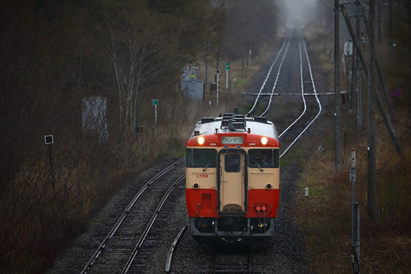 ●暮れゆく山里にエンジン音の余韻を残し、2両のキハが走り行きました。
