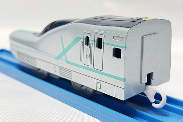 nayu_X_08 長く伸びたノーズに飛び出た運転台が印象的な6両目。客室窓が1枚というデフォルメとなったのが目を引く。 【この画像の記事に戻る】 映画でも活躍!インパクトある超ロングノーズな次世代新幹線「ALFA-X」のプラレール振り返る! 前の画像 次の画像