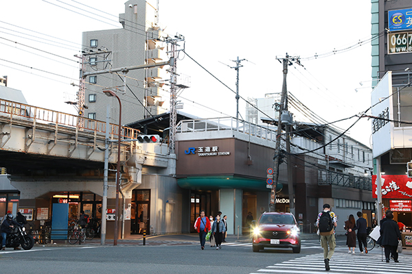 ▲玉造駅の西側を南に向かって望む。道路が膨らんでいるのがわかる。