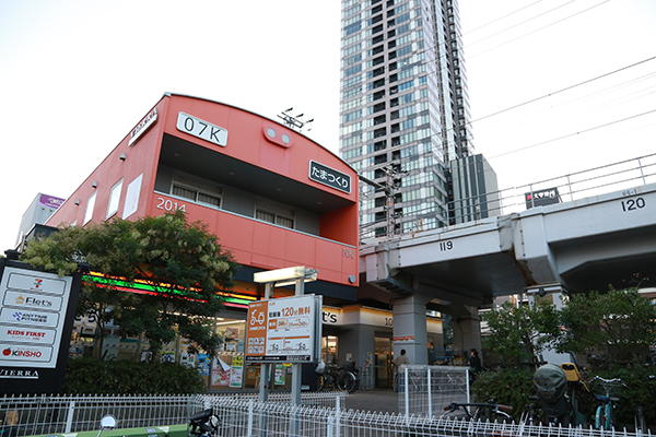 玉造駅の西側からぐるっと回る形で玉造駅を見ていきましょう。土地の形が今でもここに貨物駅があったことを伝えてくれています。