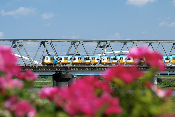●都会を行き交う電車の中に赤電15両編成がやって来た!