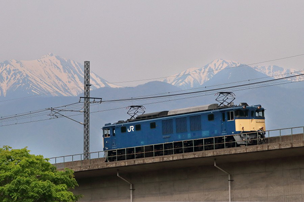 ●廃車のため、自走で長野に向かうEF64 1053。雪山に想い出すのは、故郷の谷川連峰や魚沼の山々だろうか…。
