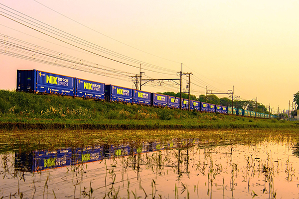 ●「トヨタロングパスエクスプレス」の新色のコンテナが登場!新色と旧色の混合貨物が盛岡へと向かいます。