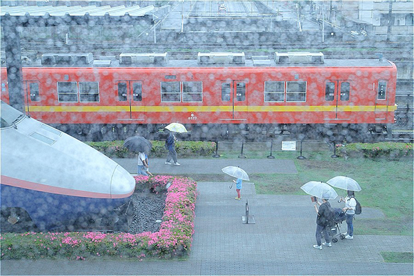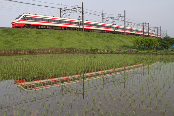 ●今年も相鉄沿線のバラ園が公開になりました。白いツルバラの香りに包まれるように相鉄8000系が駆け抜けます。