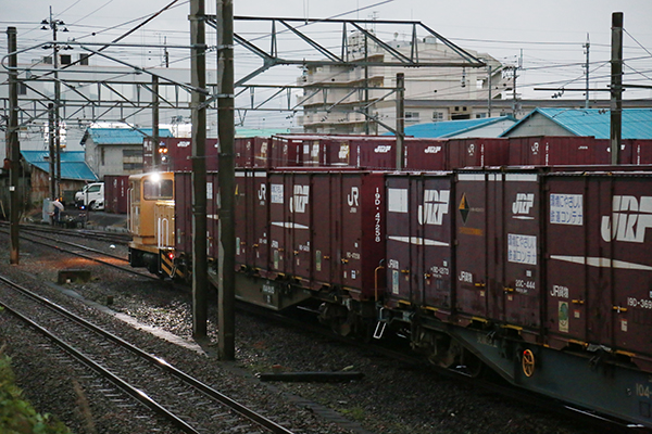 13 編成を半分ずつ荷役ホームに押し込むため、一旦構内の引き上げ線に入る。 【この画像の記事に戻る】 JR貨物のEF65が来ていた四国の「伊予三島大王製紙専用線」そこでは往年の鉄道シーンが再現されていた! 前の画像 次の画像
