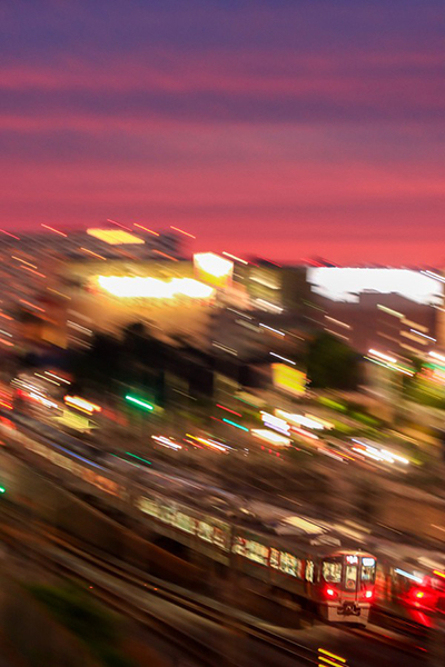 ●一日の終わりを告げる頃、ご褒美の爆焼け空が目の前に現れました。この日、最後の美風景と大阪環状線をシンクロさせ流してみました。