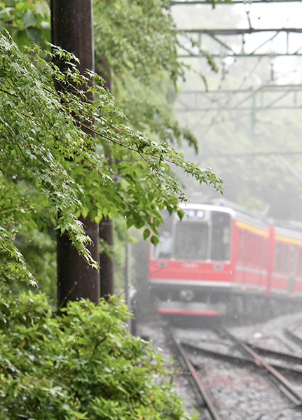 ●雨に洗わらて一際瑞々しい山を駆け上る箱根登山鉄道