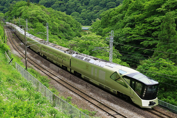 ●新緑の諏訪峡を往く「四季島」。3泊4日の旅はまだ始まったばかり。