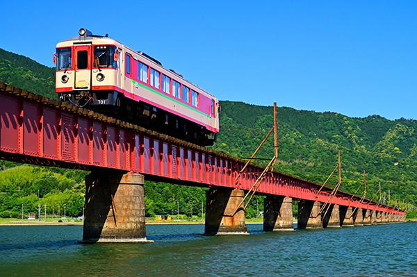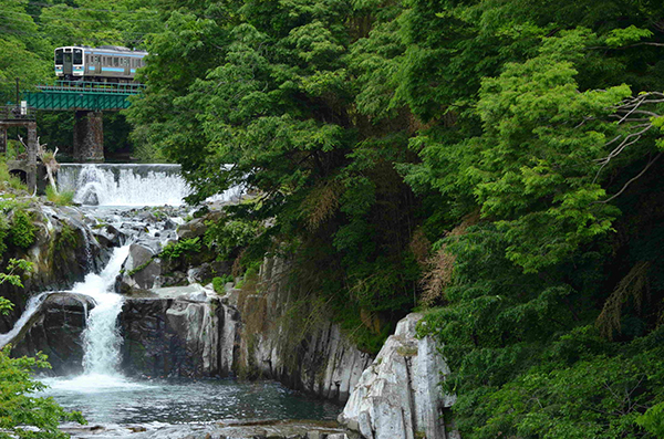 ●国鉄時代から変わらない沿線屈指の名所を、国鉄時代のキロ28を模した車両が轟音を立てて渡って行きました。