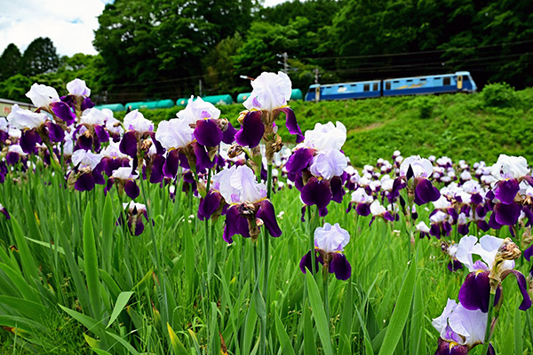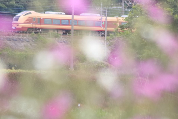 ●山里の緑が濃くなり、そして、田んぼには水の入る初夏の景色の中を、検査入場中のキハ72系に代わって走る赤いキハ185系が、緑の中にその赤い色とエンジン音を山あいに響かせながら、走り抜けて行きました。
