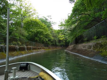 びわ湖疎水船の終点である蹴上乗下船場は、蹴上発電所の前にあります。ここから南禅寺船溜までは高低差があるため、インクラインの出番です。というわけで、次回はいよいよ鉄道である「蹴上インクライン」をご紹介します。(次回へ続く)。