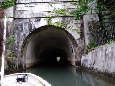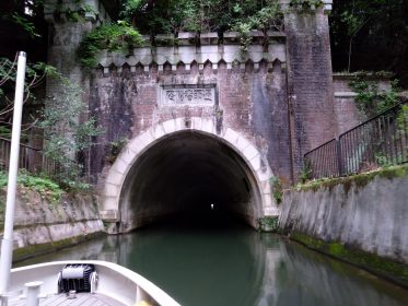 水路上で最も短い約124mのトンネルです。入口の扁額は井上馨による「仁以山悦智為水歓」、出口側は 西郷従道による「随山到水源」の揮毫となっています。このトンネルの特徴として出口側の坑口の断面形状が馬蹄型となっている点で、出口の手前から徐々に形状が変化していくのが分かります。ただし、疎水船の性質上、前部に乗船していると入口はよく見えますが、出口はよく見えません。後部に乗船した場合はその逆になります。出入口の形状を両方よく見たい場合は往復するのが安全ですが、席順は予約した順番となるため、早い段階で往復予約するのも一つでしょう。