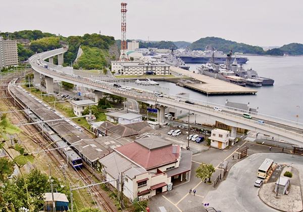 ●4両編成の車両が滑り込む港町横須賀