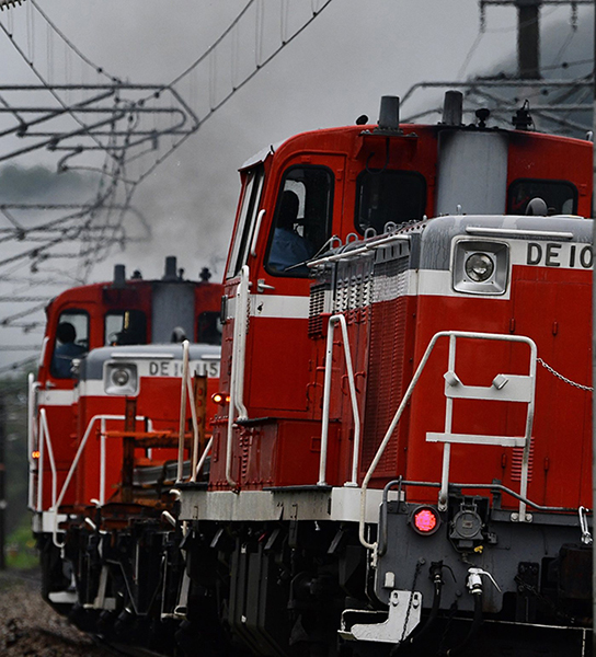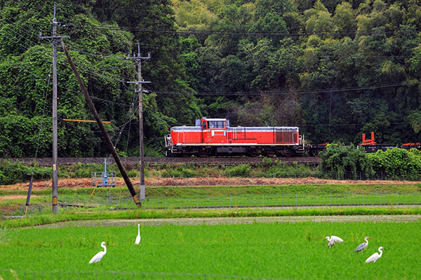 ●田んぼに餌を探しに来たサギを見ながら、チキの回送のためにDE10が、横切りました。