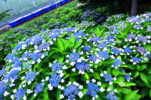 ●西武鉄道に譲渡され始めた8000形。8000形から紫陽花を見られるのはあと何シーズンだろうか。