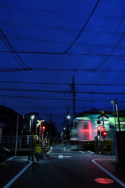 ●夜の池上線の踏切にて。東京23区内とは思えないほど静かでした。