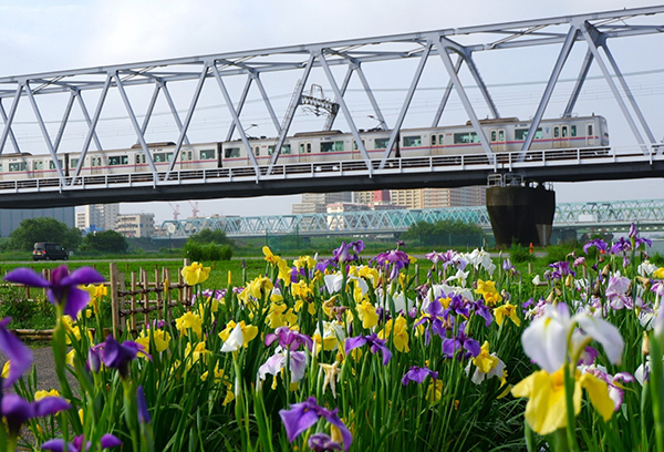 ●江戸川河川敷にある菖蒲園は見頃を迎えています。