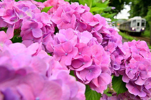 ●梅雨入り後、木々の葉っぱが新緑から深緑に移り変わる季節に。西武新2000系が満開に咲いた花菖蒲の横を走って行きました。