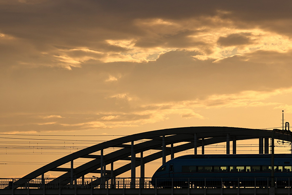 ●バックの自動車橋にかかるアーチが、ロマンスカー「MSE」にぴったりはまってくれました。