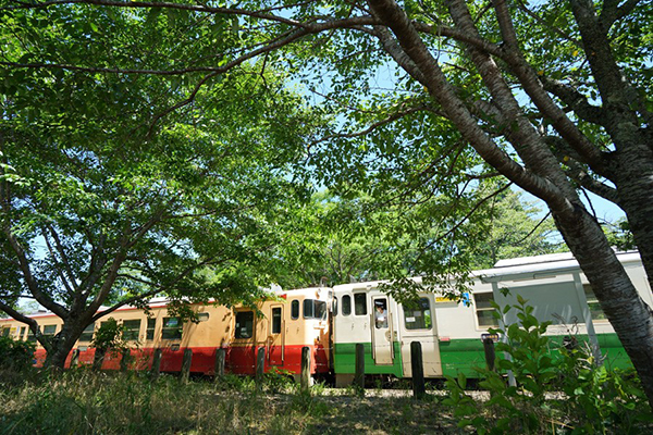 ●初夏の月崎駅。わずかな木陰が心地よい。